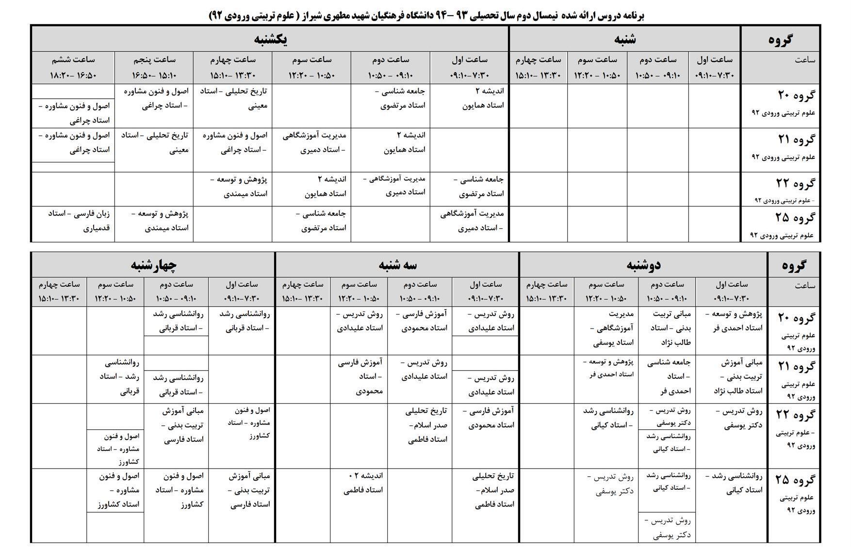 برنامه دروس ارائه شده رشته علوم تربیتی ورودی سال 92