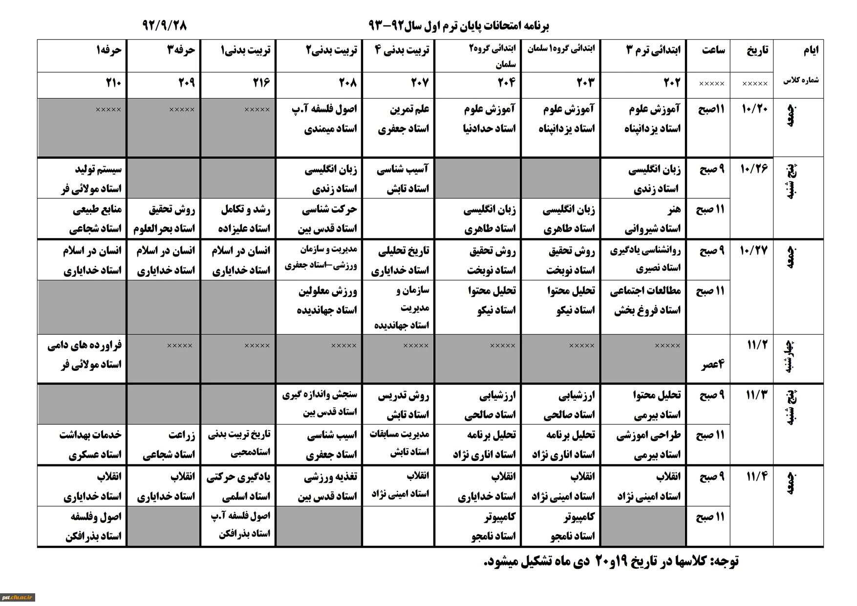 برنامه امتحانات پایان ترم مقطع کارشناسی ناپیوسته