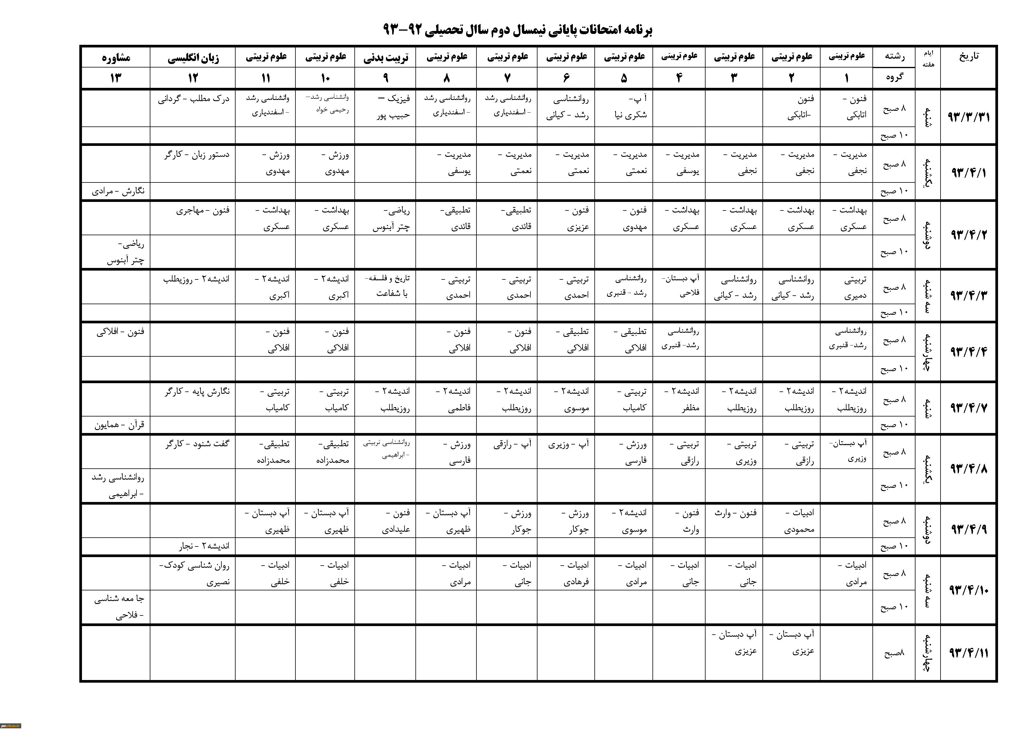 سربرگ آزمون پایانی دوره تابستانی 1402-1401