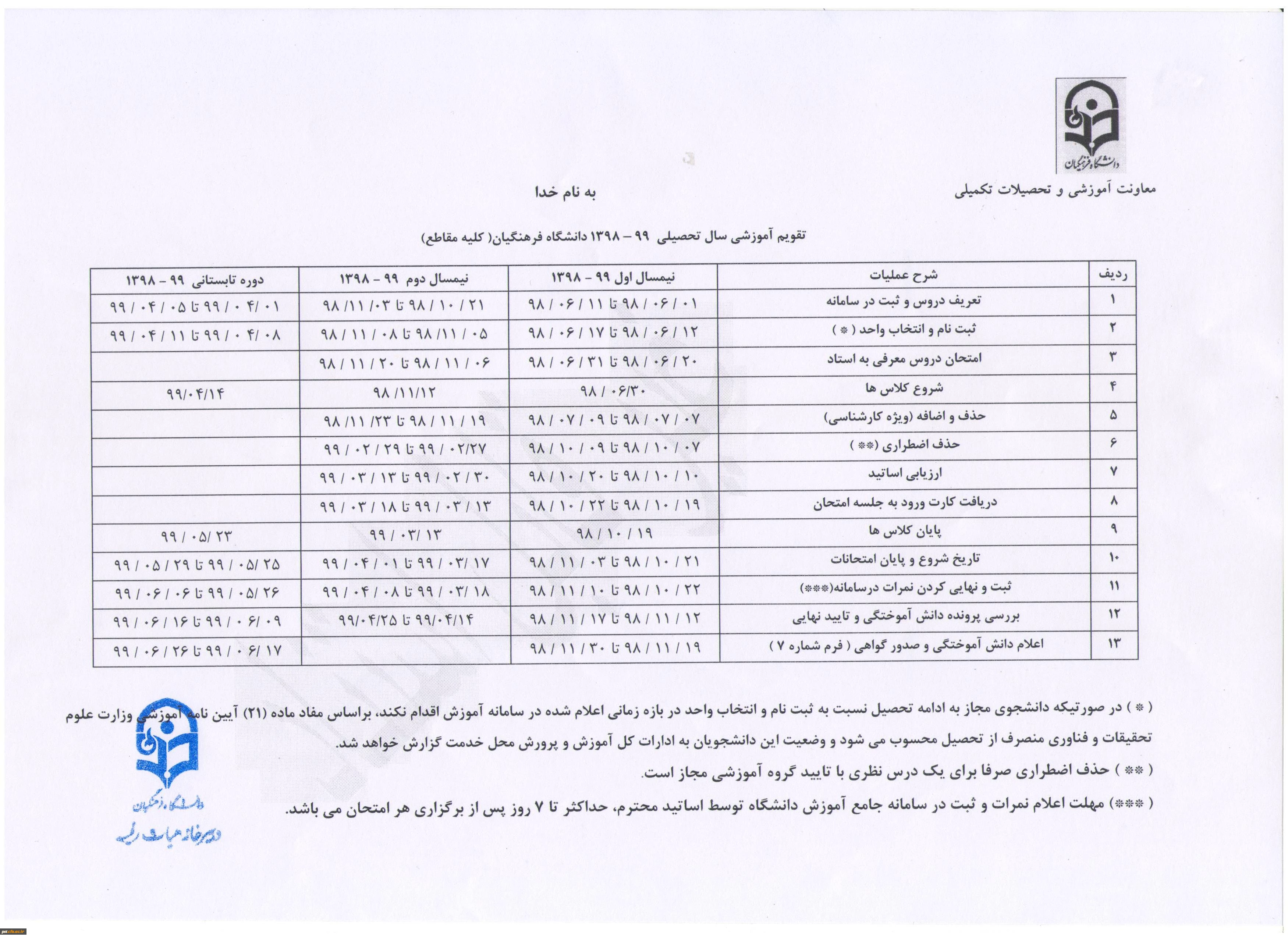 تقویم آموزشی مصوب سال تحصیلی 99-98