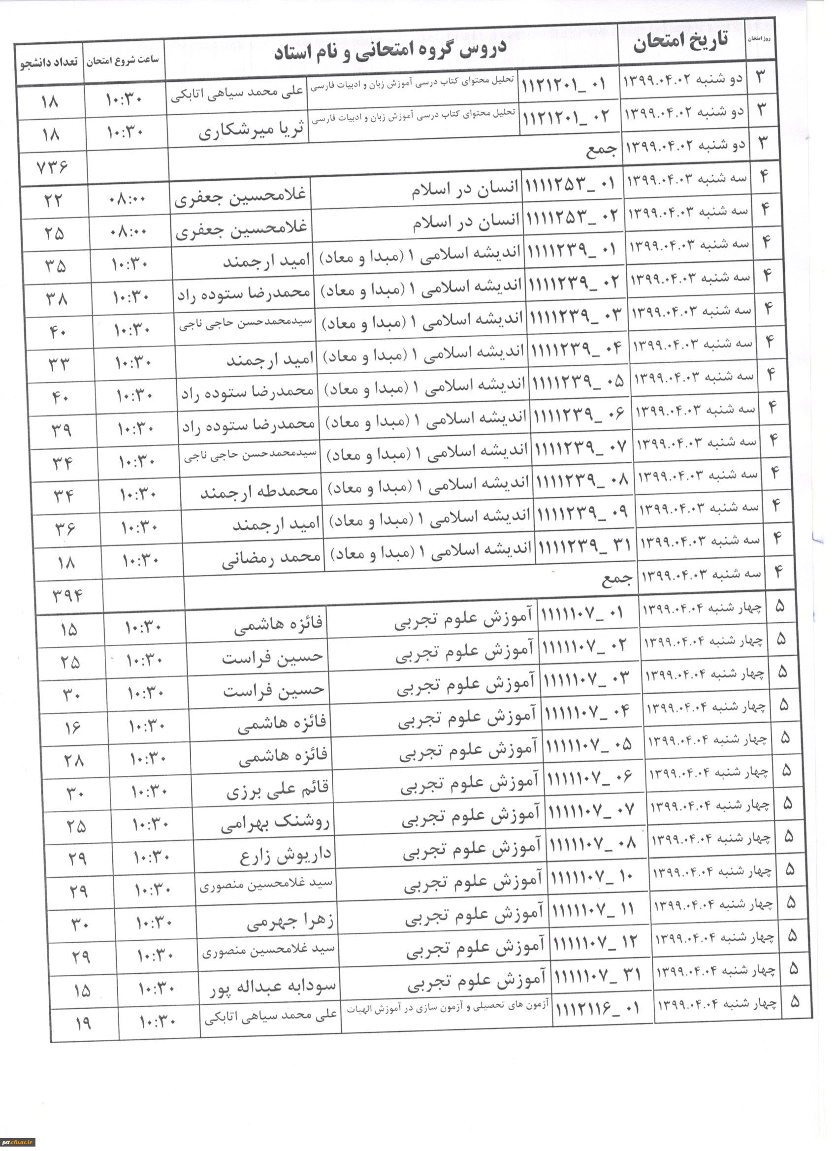 برنامه امتحانات ترم 3982 ترم دوم سال تحصیلی 98-99