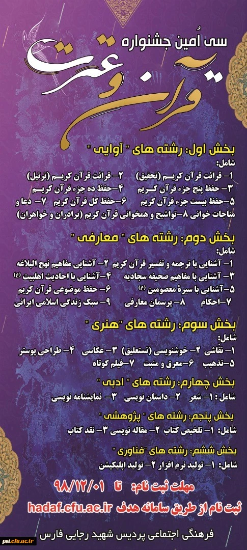 تاریخ، منابع، شیوه نامه برگزاری و دستورالعمل سی امین جشنواره قران و عترت مرحله استانی