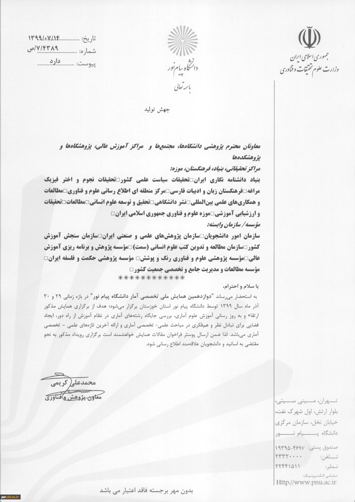 دوازدهمین همایش ملی تخصصی آمار دانشگاه پیام نور