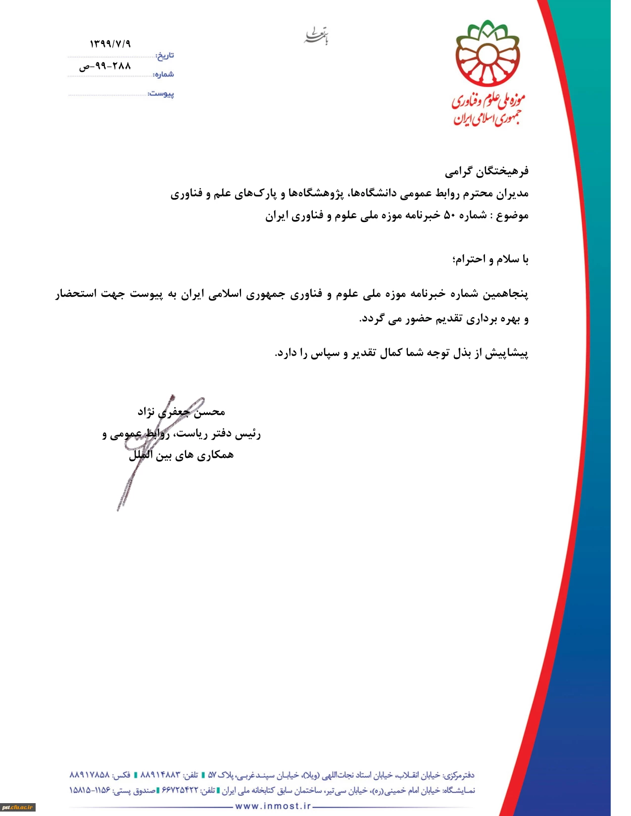 شماره 50 خبر نامه موزه ملی علوم و فناوری ج . ا ا