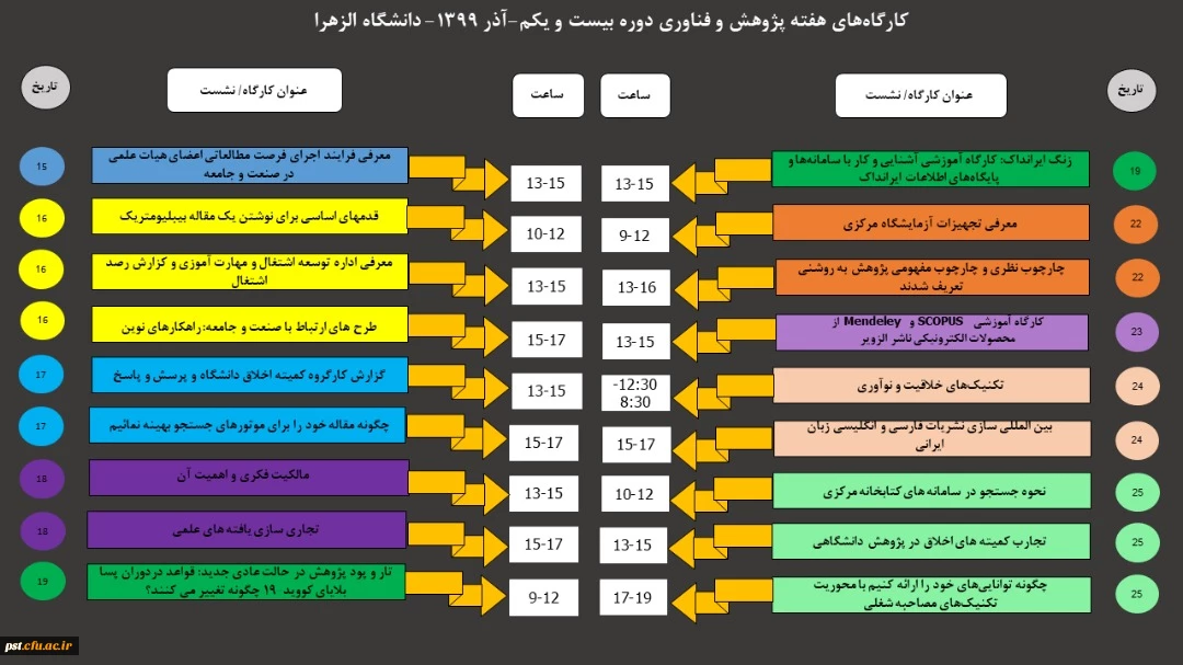 اطلاع رسانی کارگاه های هفته پژوهش و فناوری به مناسبت هفته پژوهش دانشگاه الزهرا مرحله بیست و یکم 2