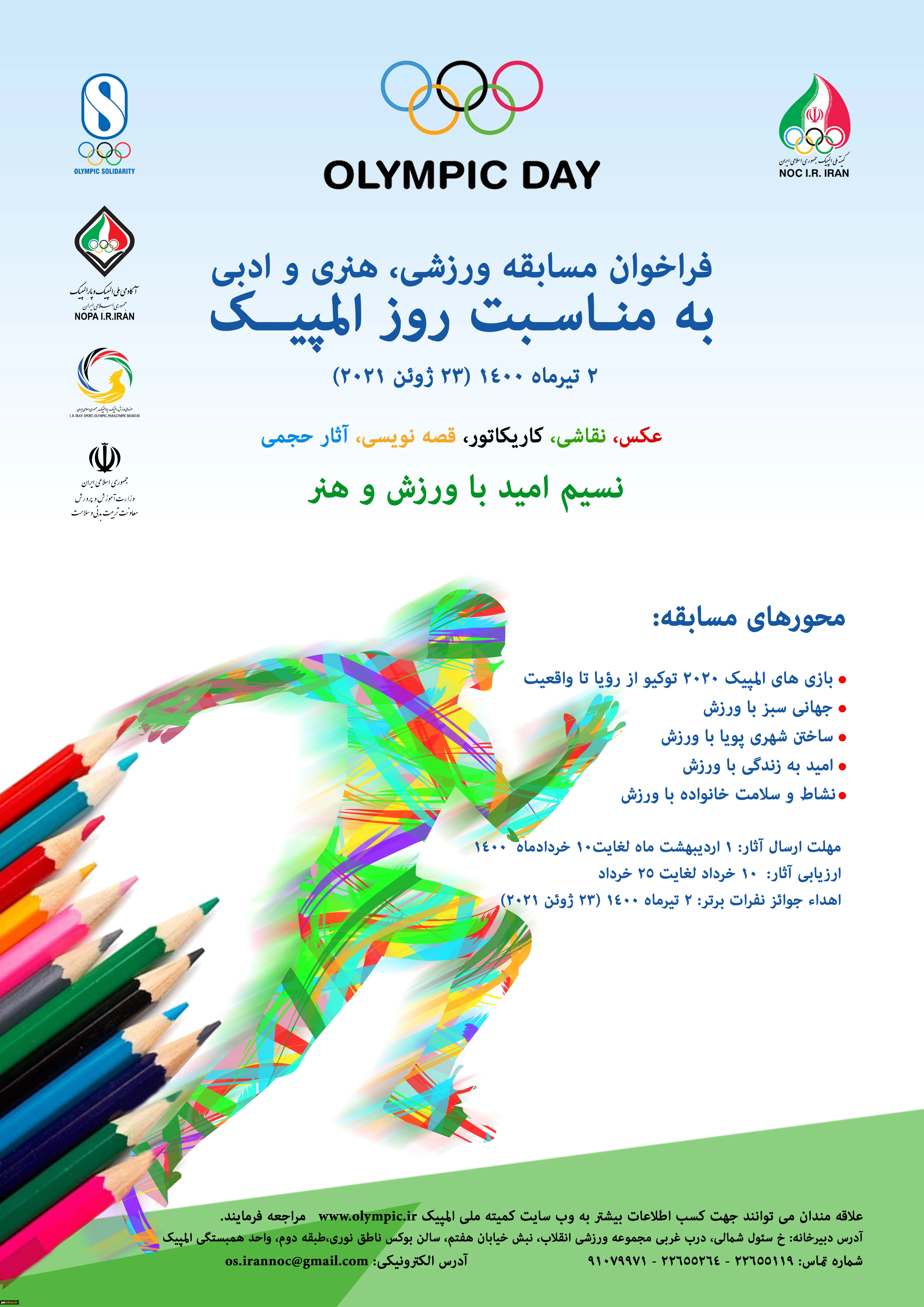 امتیاز دهید : فراخوان مسابقه ورزشی، هنری و ادبی به مناسبت روز المپیک 2 سهشنبه 17 فروردین 1400 ساعت 9:27