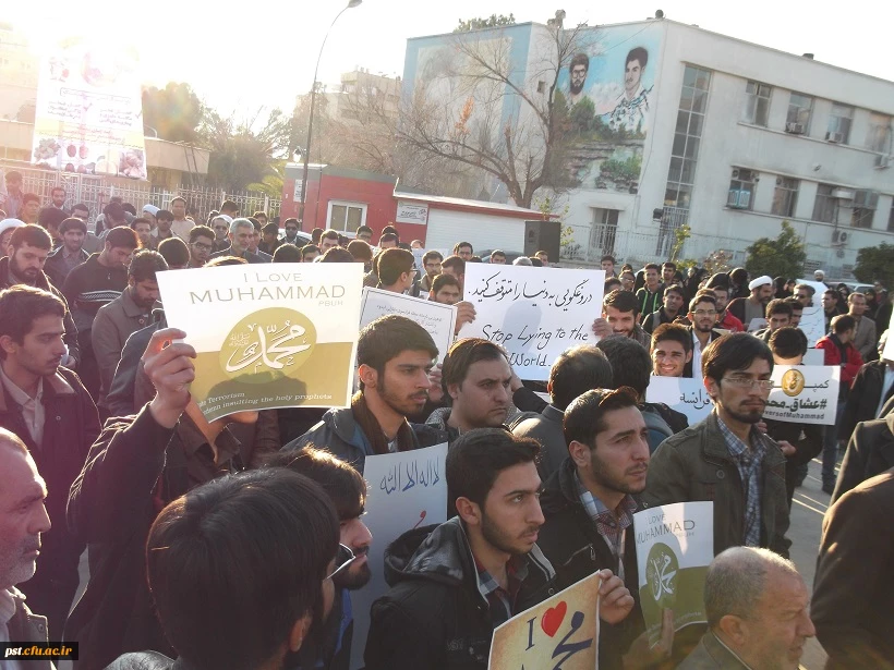 تجمع دانشجویان بسیجی دانشگاه شهید مطهری(ره) شیراز در اعتراض به اقدام اهانت آمیز نشریه فرانسوی شارلی ابدو به پیامبر مکرم اسلام(ص)