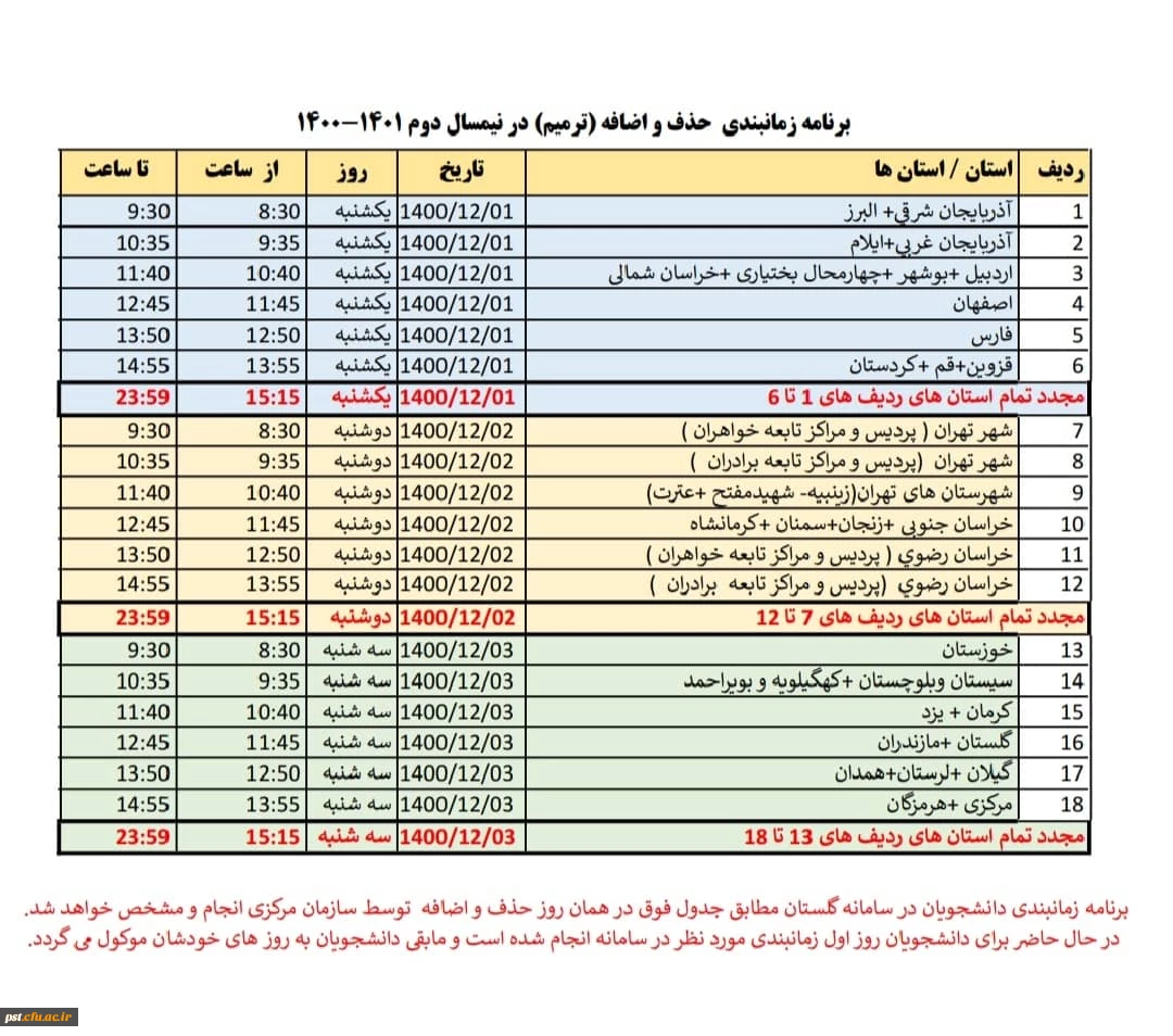 برنامه زمانبندی حذف و اضافه ( ترمیم) در نیمسال دوم 1401-1400 2
