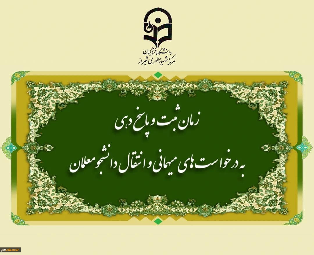 امتیاز دهید : زمان ثبت و پاسخ دهی به درخواست های میهمانی و انتقال دانشجومعلمان 5 شنبه 21 خرداد 1401 ساعت 9:22