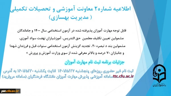 زمان بندی ثبت نام غیر حضوری و حضوری مهارت آموزان پذیرفته شده در آزمون استخدامی سال 1400 و سایر جاماندگان اعلام شد 2
