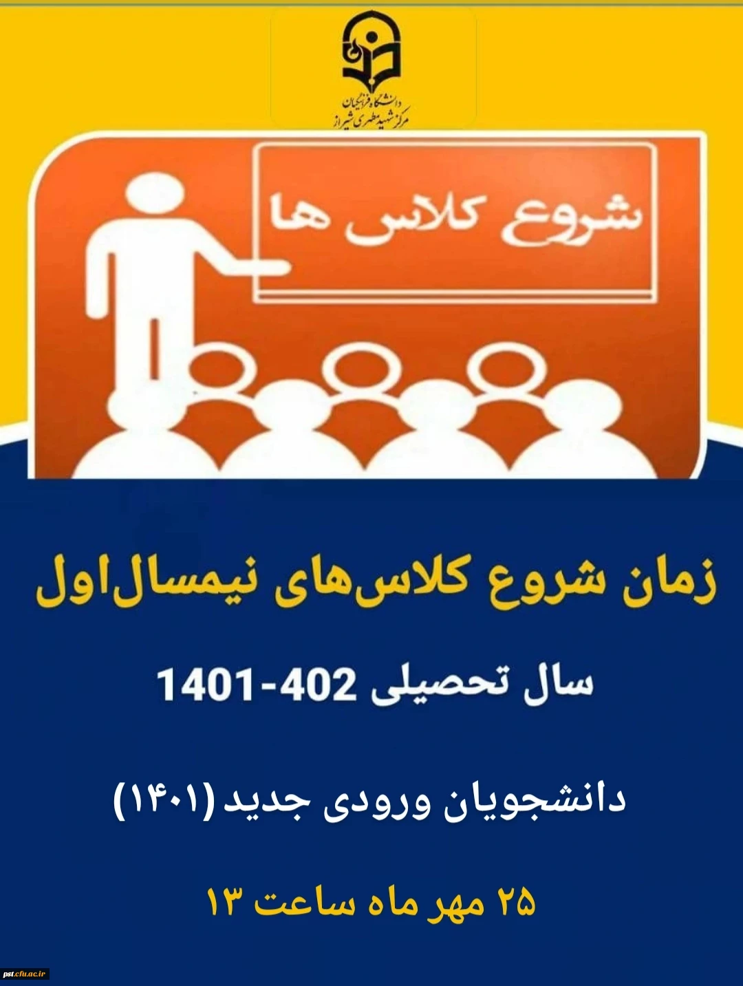 امتیاز دهید : شروع کلاس های نیمسال اول سال تحصیلی جدید دانشجویان ورودی ۱۴۰۱ بصورت مجازی 2 یکشنبه 24 مهر 1401 ساعت 21:27