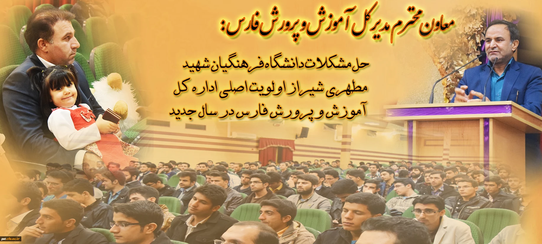 نظری ، معاون محترم مدیرکل آموزش و پرورش فارس : تمام تلاش های اداره کل آموزش و پرورش فارس این است که جشن آغاز سال تحصیلی آینده دانشگاه فرهنگیان شهید مطهری شیراز در مکانی در شهر شیراز برگزار شود .