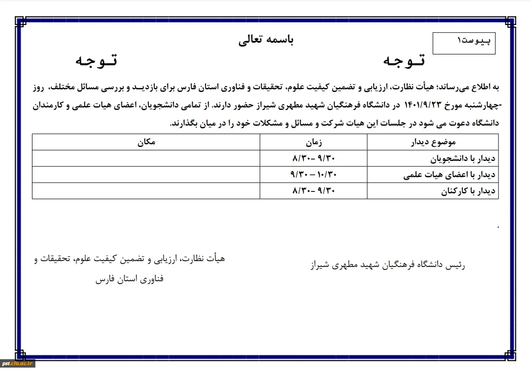 حضور هیئت نظارت ارزیابی و تضمین کیفیت علوم، تحقیقات و فناوری استان در مرکز شهید مطهری شیراز 2