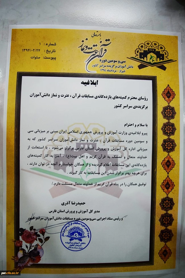 رونمایی از آرم مسابقات قرآن ، عترت و نماز وزارت آموزش و پرورش ، تهیه شده توسط دانشجویان دانشگاه فرهنگیان شهید مطهری شیراز