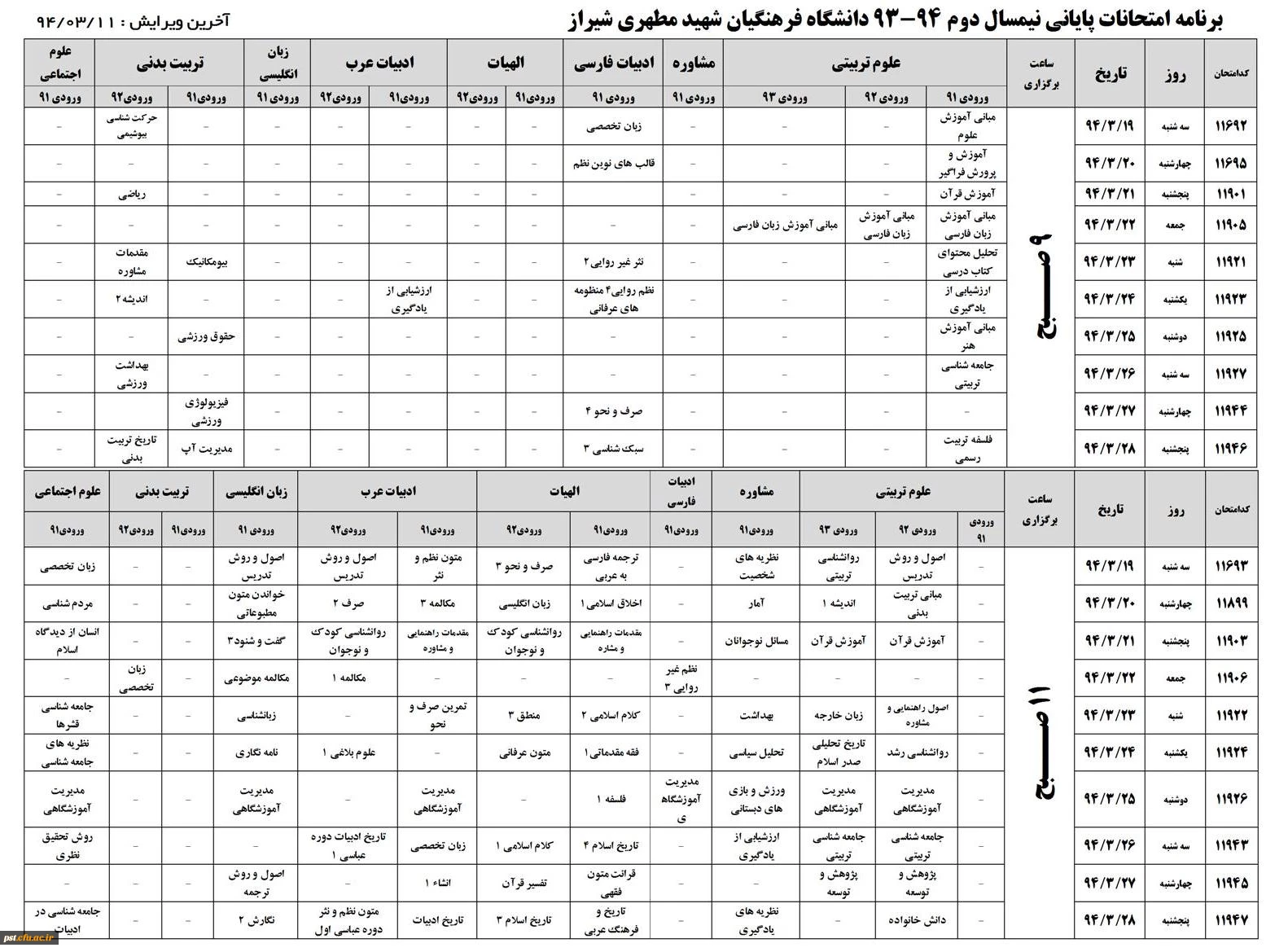 برنامه امتحانی 932