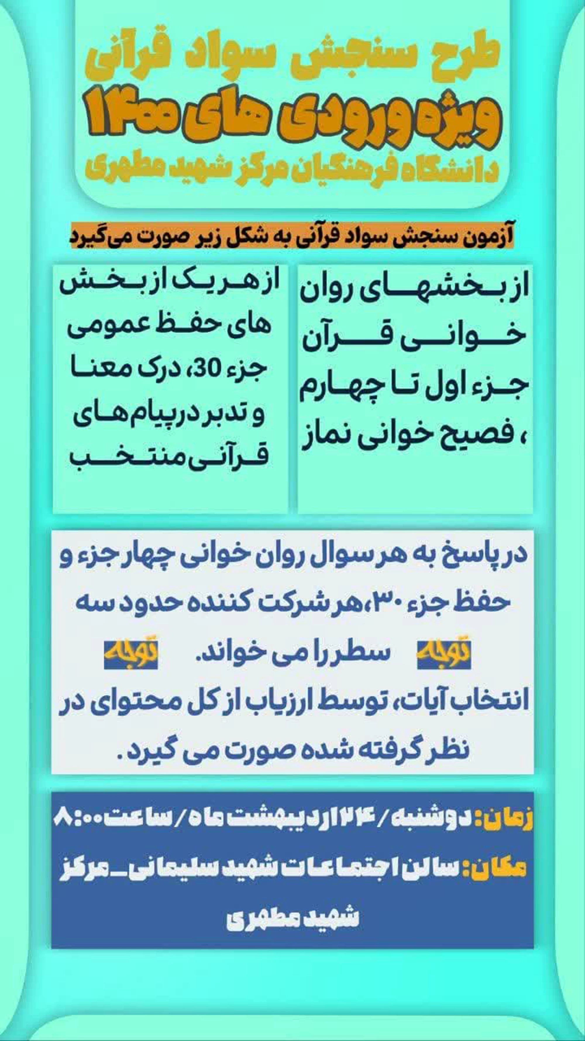 طرح سنجش سواد قرآنی ویژه ورودی های ۱۴۰۰