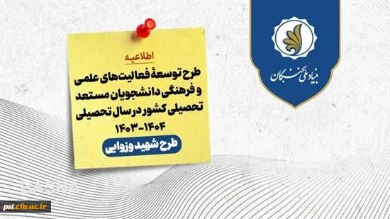 امتیاز دهید : اعطای اعتبار و تسهیلات به دانشجویان مستعد تحصیلی کشور توسط بنیاد ملی نخبگان 2 سهشنبه 22 آبان 1403 ساعت 15:20
