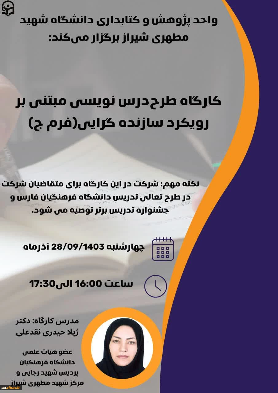 امتیاز دهید : کارگاه طرح درس نویسی مبتنی بر رویکرد سازنده گرایی(فرم ج) 2 یکشنبه 25 آذر 1403 ساعت 9:50