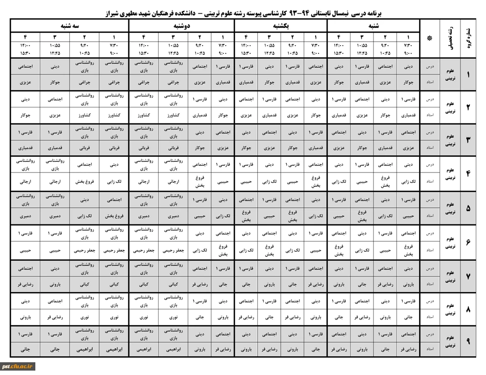 برنامه امتحانات پایان ترم 4012