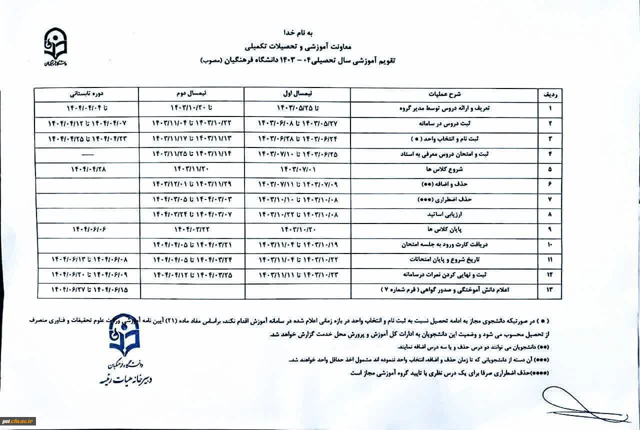 تقویم آموزشی سال تحصیلی 1403-1402 دانشگاه فرهنگیان
